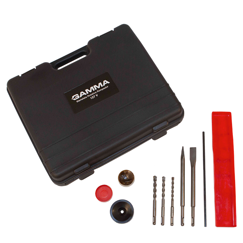 | Acompanha | Maleta plástica com: limitador de profundidade, talheira e ponteira, 3 brocas para concreto e punho auxiliar. |