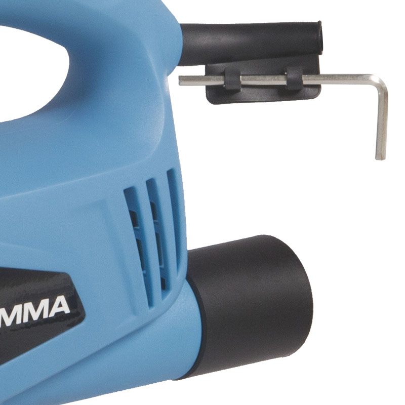 Serra tico-tico pendular laser 710W, com velocidade sem carga de 800 a 3.000 gpm com seis níveis de regulagem.